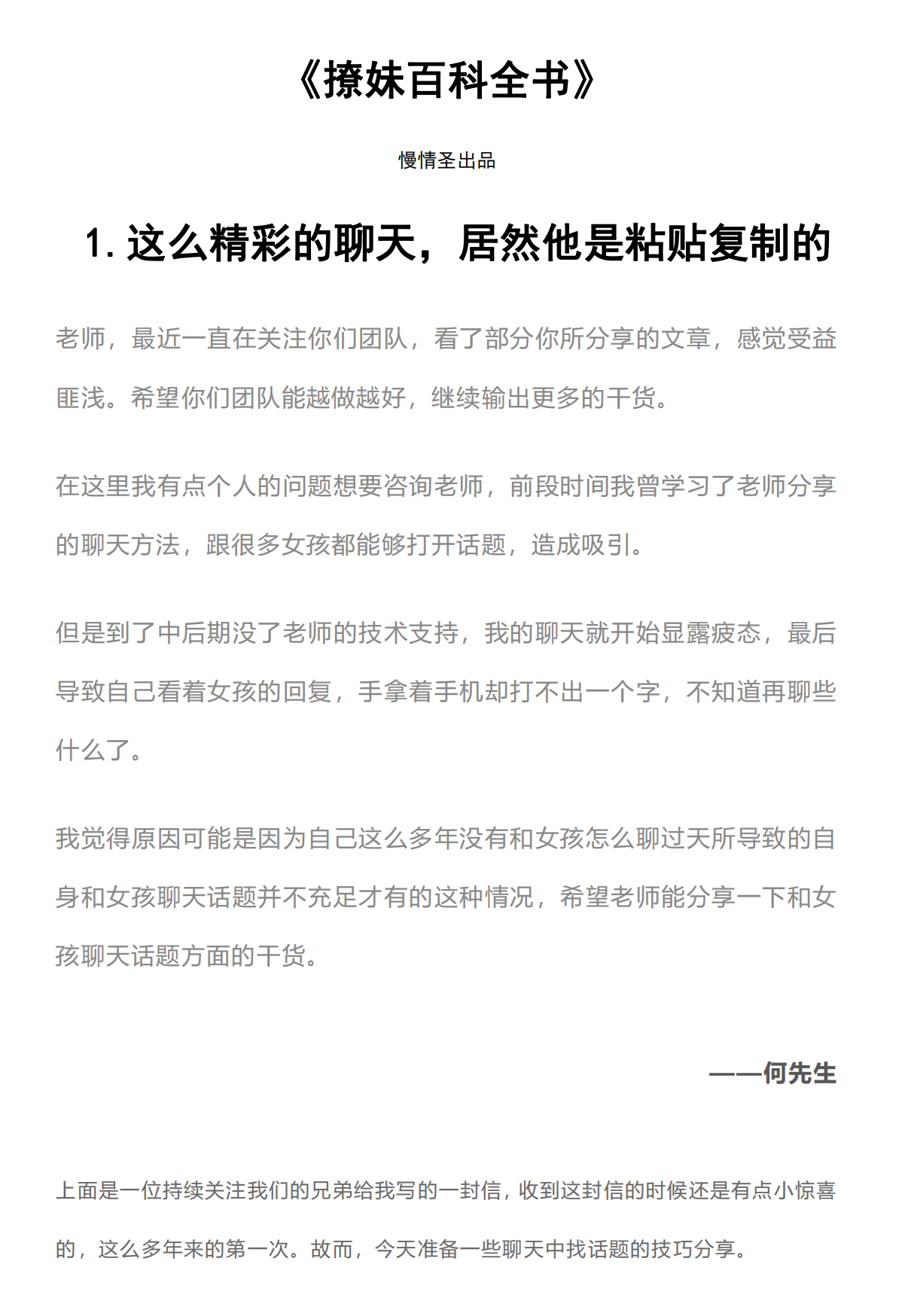 慢情圣《撩妹百科全书》近300页实战案例: